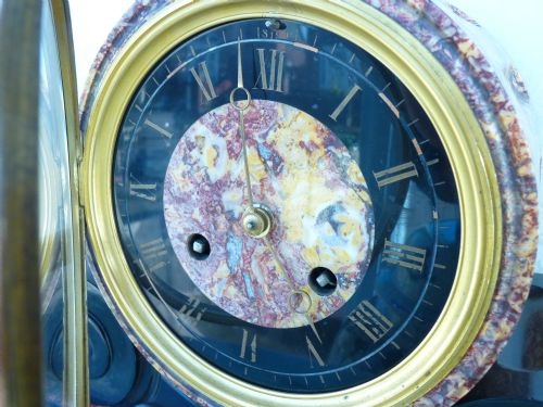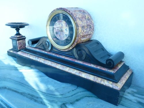 A very good example of a Paris made Black Marble and yellow granite Mantle Clock by the famous makers Billiet anb Roblyn.