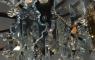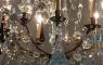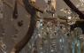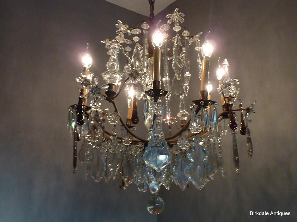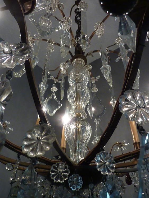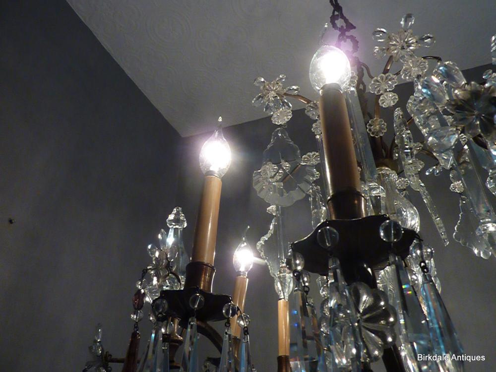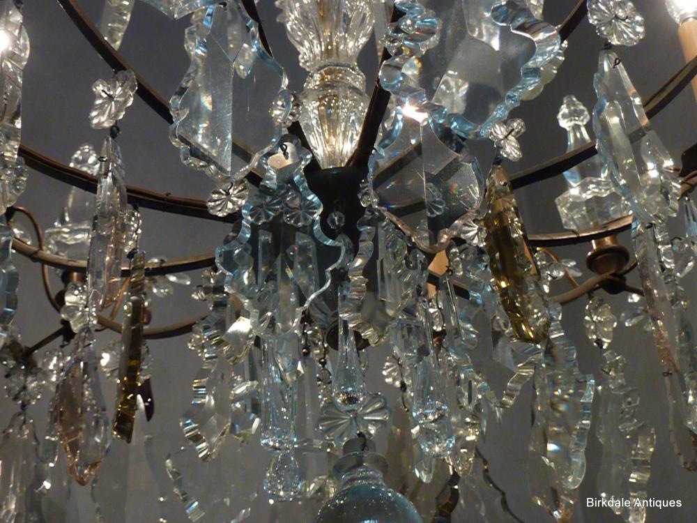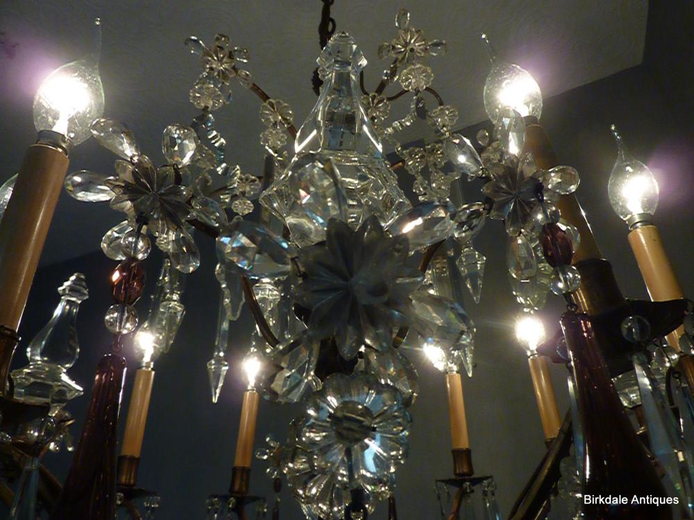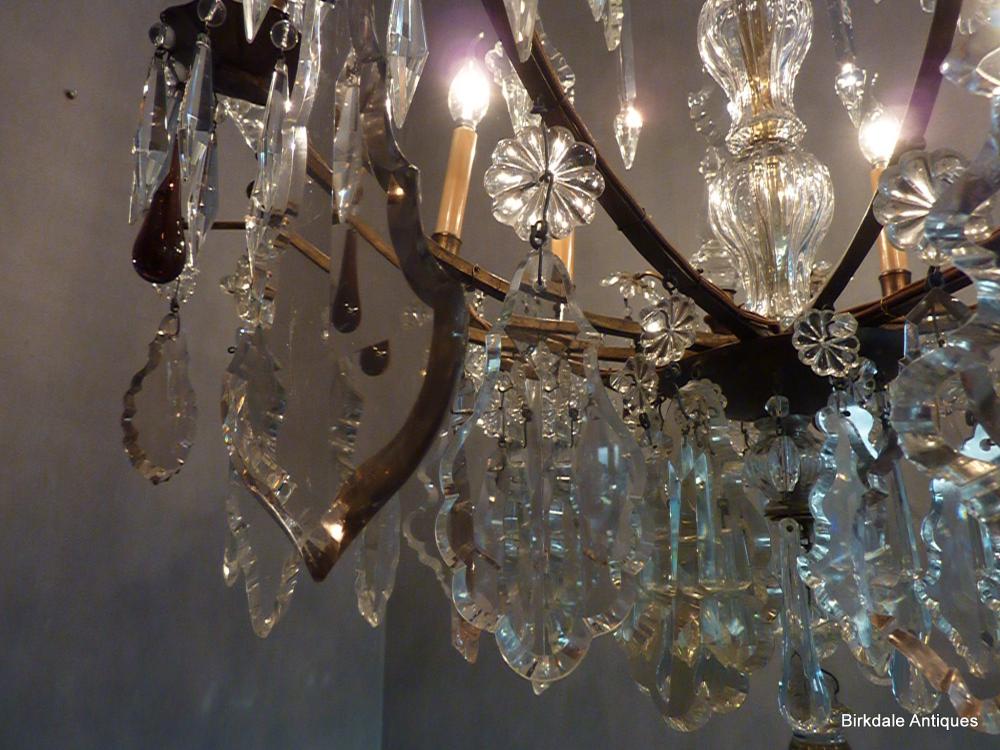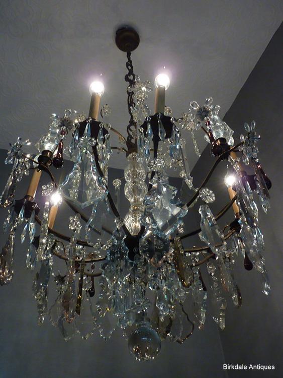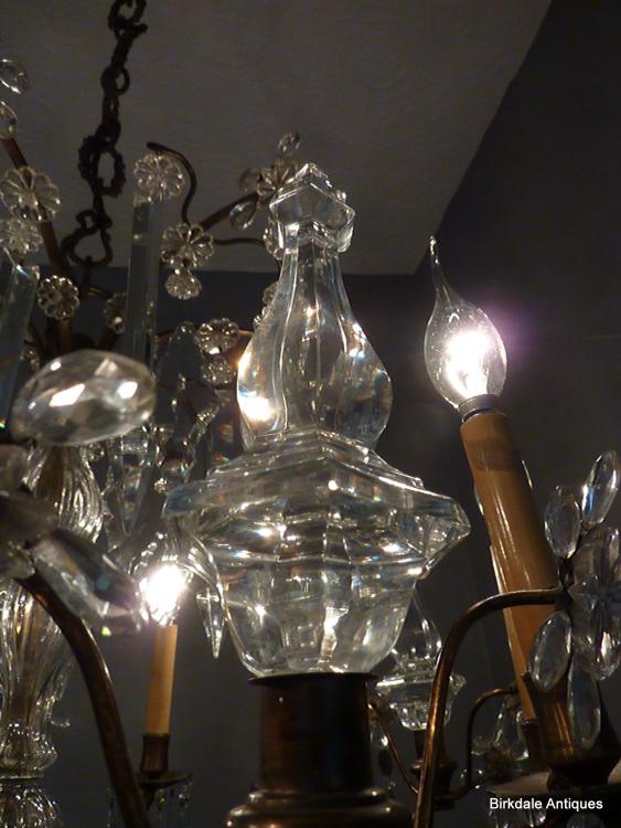 Here is a beautiful and large "Mason Bagues" Chandelier. The Bronze frame with a sumptuous brown patinated frame, suspending a waterfall of exclusive, luxurious display of tri cut spears surmounted by crystal flowers, dark plum bomb drops and a collage of citrine crystal slab cut pendalogues with smokey grey and opaque colours. The center with glass crystal columns and glass crystal turrets mounted on crystal florets.