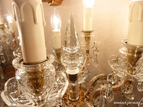A very good pair of Czech Crystal Candelabra table lamps originally Knewel post lights with added bases.